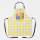 Gingham sardines custom design featuring a retro sardine tin illustration on a yellow gingham pattern, personalized with family name and year, blending vintage fish label style with coastal aesthetic, picnic vibe, mediterranean feel, nautical elements, and playful retro charm for a bold, eye-catching personalized name design.