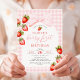 Gingham Strawberry Coquette First Birthday Invitation