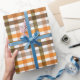 Watercolor Orange strokes checkered plaid. Gingham Wrapping Paper. Matching items available.