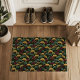 Ginkgo Leaf Pattern Teal Burgundy Design. This doormat features the popular ginkgo leaf motif in rich jewel tones of teal, burgundy and gold on an off-black background. A luxurious design with a dark, moody vintage feel.
