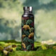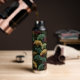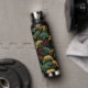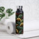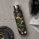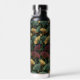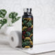 Ginkgo Leaf Pattern Teal Burgundy Design. This water bottle features the popular ginkgo leaf motif in rich jewel tones of teal, burgundy and gold on an off-black background. A luxurious design with a dark, moody vintage feel.