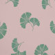 beautiful vintage wallpaper in a blush pink with delicate green ginkgo leaves.