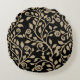 Gipsy Swirls Elegant Floral Pattern Black Beige Round Pillow