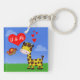 A cute and colourful illustration with a giraffe and a butterfly with red hearts.