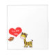 A cute and colorful illustration featuring a giraffe and a butterfly with a big red heart.