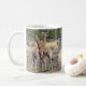 This coffee mug contains two separate images of baby giraffes. These young giraffes were on their own when we saw them. Hoping that adults were somewhere nearby. These photos were taken near Chitabe Camp, Botswana, in July 2018.