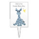 A cute blue sitting giraffe, a butterfly beside him. Welcome sweet baby boy! Customize the message as desired.