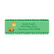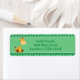 This personalized return address label features a light green background bordered by a dark green jungle leaf pattern. A cute brown and orange baby giraffe sits the left of the template area where you can add your address or other custom text.