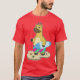My 11 yo wore adult XL (5’7” 165#). The 8yo is small framed. She wore adult small and tied it in the back. Grandma wore adult large with long sleeve shirt underneath. Tall girl adult medium. Dark haired male adult large. Good quality dark Heather gray, Gildan brand shirt. -it was next up from basic choice and cost about $20 per shirt. Not too thick or thin. Washed and dried well, no major shrinkage. Not see-through. Can wear a bra under it fine. Screen print is just as shown and well done, front and back.