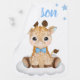 Giraffe with blue bow tie and stars and Name baby blanket personalized with name - edit in seconds! Perfect gift for baby shower or birthday!