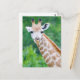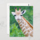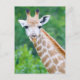 This postcard features a head shot / portrait / close-up of a giraffe.
