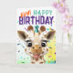 Cute and Funny Giraffe with Colorful Confetti Celebrates a Birthday.