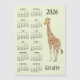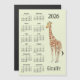 Giraffe Design 2026 Calendar Magnetic Card with customizable background color. and text.