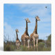 Giraffe Dad, Mom and their baby on a grassy hilltop with beautiful blues skies as a background. Do you love giraffes, you will love this design. Mix and match all of our giraffe designs to add to your giraffe collection.