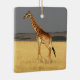 Giraffe full body walking in the grass of Africa. Beautiful spots and tail flowing behind. Majestic animal.