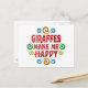 A giraffe lover can share their love with this very colorful design with spirals and the words - Giraffes make me happy. It makes a great gift.
