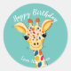 giraffe happy birthday bouquet gift wrapping classic round sticker