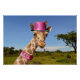 For a little fun, here's a giraffe in a sparkly pink hat and fancy choker necklace. This image was created by hand and is not AI generated.