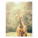 Portrait of a giraffe in the rain, green yellow hue photograph.