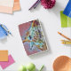 I was super excited when I got my cover in. It is attached by a magnet across the edge. I don’t think it will be very protective but it is very cute. I’m going to keep my iPad in a sleeve and use this face cover while I have it out. It folds to create a tilt for better viewing and to keep the iPad at a slight angle for typing. The colors are bright and it is fun. I’ve really enjoyed it. The personalization looks like amazing. It is the same color as the picture and is the same brightness. Well done! Very nice.