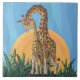 Giraffe Mama and Baby children’s art created by Imagine That! Design on electronics, accessories, and gifts is a whimsical scene of a mom and baby giraffe standing against a setting sun and a textured blue sky snuggled up together with the mama’s neck curled over so her and her baby can touch cheeks in a loving pose. Giraffe lovers of all ages will love getting this cute giraffe family painting as a gift.