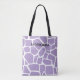 Elevate your style with this tote bag featuring a unique giraffe-like pattern in shades of purple and white. The design is complemented by durable black handles, making it a chic and functional accessory. Perfect for daily use, beach trips, or as a thoughtful gift for someone special. Crafted from high-quality fabric, this tote bag is both stylish and practical.