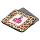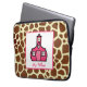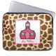 An electronics bag for teachers featuring a giraffe print background. Personalize with your name under Pink Schoolhouse.