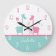 Giraffe Pink Mint Aqua Teal Wall Clock