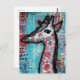 A colorful patterned giraffe portrait in red, turquoise, yellow and navy blue.