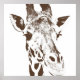 This fun design features a pop art type image of a giraffe, in brown, on a white background.