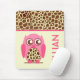 A mousepad featuring an illustration of a giraffe print and pink owl. Matching border at top. Personalize with your name in pink at right. Look for matching items at Jill's Paperie.