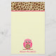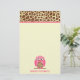 Stationery featuring an illustration of a giraffe print and pink owl at bottom. Personalize with your name under owl. Top is giraffe print with pink trim.