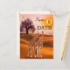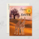A cute and romantic Save the Date postcard with giraffes in an African style landscape. You can customize all texts, also change fonts and more. Choose "customize it" for all options. Lovely Save the Date for a couple getting married in the zoo, loving animals, or planning a safari honeymoon. Original design by ©Anne Vis.