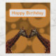 Pictured on a brown circular background are two identical Giraffes