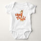 A cute giraffe of tan, brown, and orange with orange text that reads Stand Tall on T-shirts, bodysuits, bibs, mugs, blankets, cards, stickers, bags, magnets, and much more!