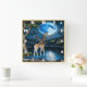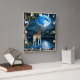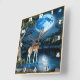 Giraffe Standing by River Under Moonlit Sky Square Wall Clock