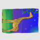Enjoy your golf with this colorful towel, featuring a giraffe in the moonlight.