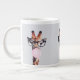 Giraffe wearing glasses blowing pink bubble gum giant coffee mug