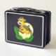 This is a standard metal lunchbox that appears to work just fine. We designed this box ourselves with an uploaded photo and custom text on the front and back. It looks absolutely beautiful except the front of the lunchbox is not centered like it shows in the photo. The print borders don't align with the inset flat part of the box where the preview photo online showed it perfectly centered in there. The back looks nice and centered though.