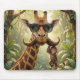 Giraffe With Mustache and Monkey Mouse Pad