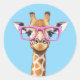 Giraffe with Pink Glasses Sticker Blue Background