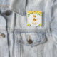This cute and whimsical button can be personalized with a name or title, such as dad, grandpa, uncle, big brother etc. The design features an adorable giraffe with a flower crown and yellow floral arrangements with faux gold glitter confetti. The text combines handwritten script and sans serif fonts for a stylish and modern look. This is perfect for a giraffe themed baby shower.