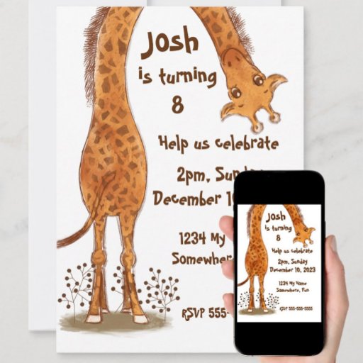 Giraffe, Zoo Animal Birthday, Personalizable Thank You Card