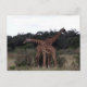 Scene of two giraffe fighting with crossed necks in the Masai Mara, Kenya. Fully customizable postcard.