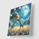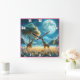 Giraffes grazing under Africa's moonlight Square Wall Clock