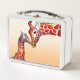 This is a standard metal lunchbox that appears to work just fine. We designed this box ourselves with an uploaded photo and custom text on the front and back. It looks absolutely beautiful except the front of the lunchbox is not centered like it shows in the photo. The print borders don't align with the inset flat part of the box where the preview photo online showed it perfectly centered in there. The back looks nice and centered though.