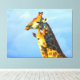 Giraffes cuddling underneath a blue sky on A stretched canvas is the perfect artwork to compliment the room in your home where this will hang. It will create conversations and be a centerpiece for everyone to enjoy. This was taken near a waterhole on Addo Elephant park.