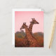 Giraffes with a pink sky