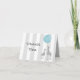 Sweet baby themed thank you card done in a light gray and white vertical stripe pattern, with watercolor artwork of two giraffe's with a blue balloon. Personalize the black text, inside and out, to suit your needs. Matching baby shower invitations are available.