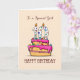 She will be ten. This card with a number 10 candle stop a pink icing cake is just what the baker ordered for her 10th birthday celebration. Send this card now and make a sweet day out of her special day.